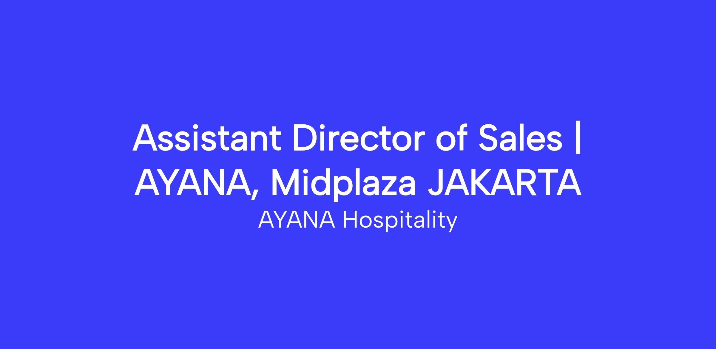 AYANA Hospitality is in search of a dynamic Assistant Director of Sales for our prestigious AYANA Midplaza Jakarta property. This role calls for a strategic thinker with a passion for the hospitality industry and a proven ability to drive sales and enhance customer relationships. As an Assistant Director of Sales, you will be responsible for leading the sales team, formulating sales strategies, and fostering long-term relationships with key clients to maximize revenue and achieve business objectives.
