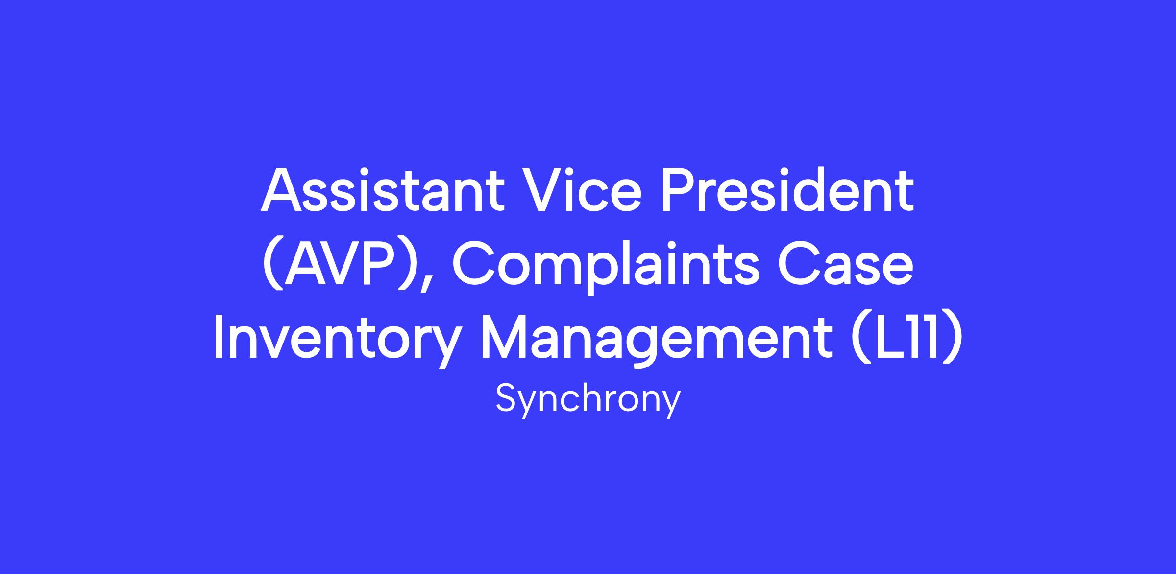 Role Title: Assistant Vice President (AVP), Complaints Case Inventory Management (L11)