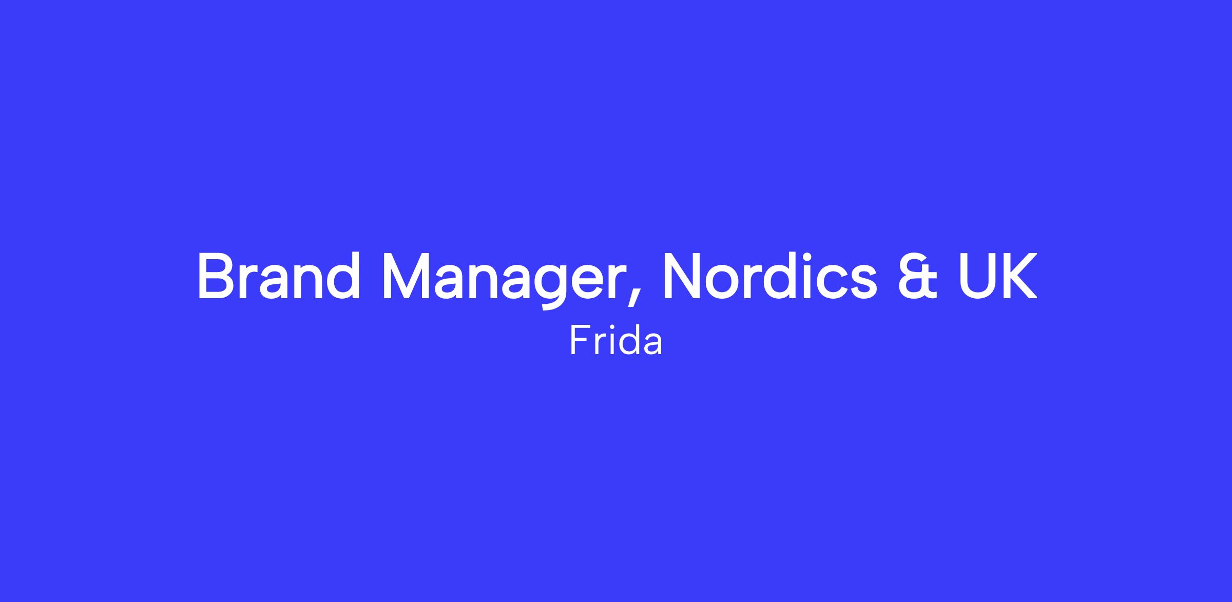Frida is an organization that values collaboration and community. As the Brand Manager, Nordics & UK, you will work closely with International, Brand Management and Sales teams.