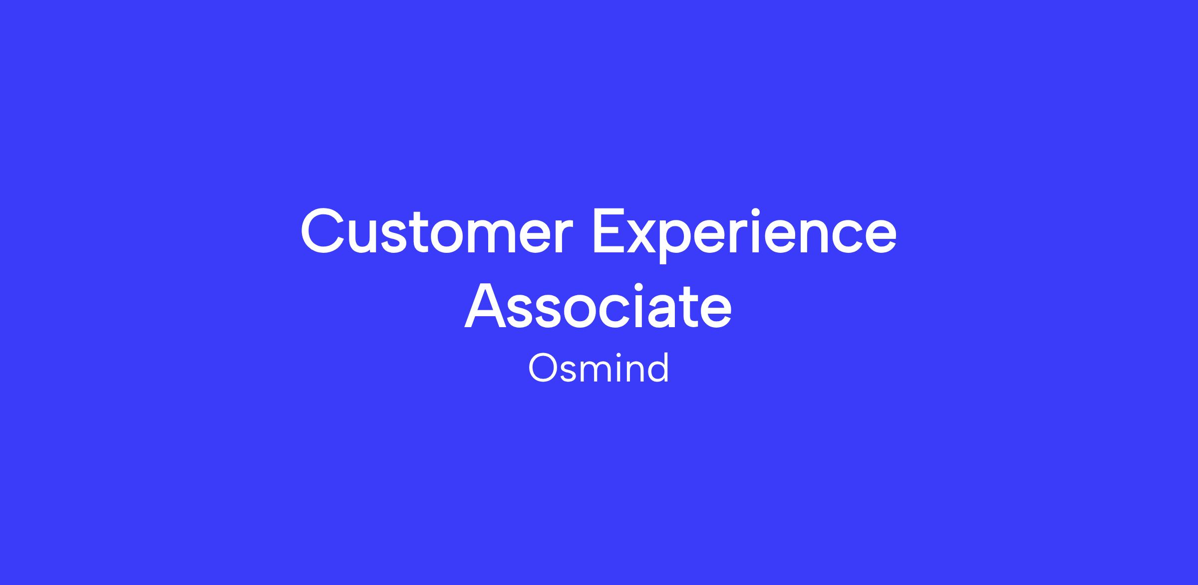 About the RoleWe are looking for a Customer Experience Associate to be a part of our growing CX team. This role gives you insight and exposure to many different areas of the organization, and a lot of opportunity for learning and growth. As CEA, you will report directly to our Customer Experience Manager and help be the face of Osmind to our customers.
