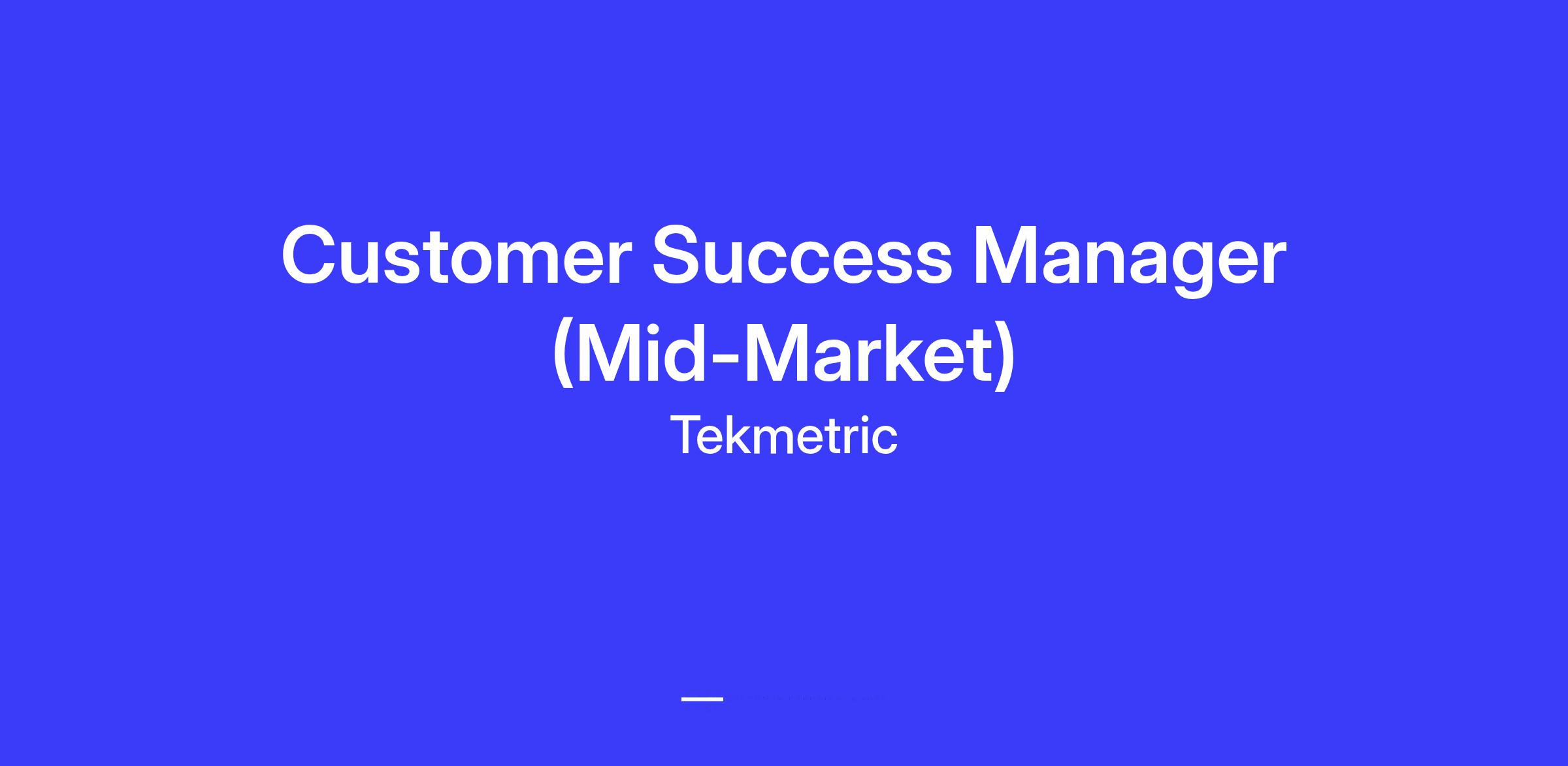 - Assist in building processes and assets that enable Tekmetric to scale the Customer Success organization.