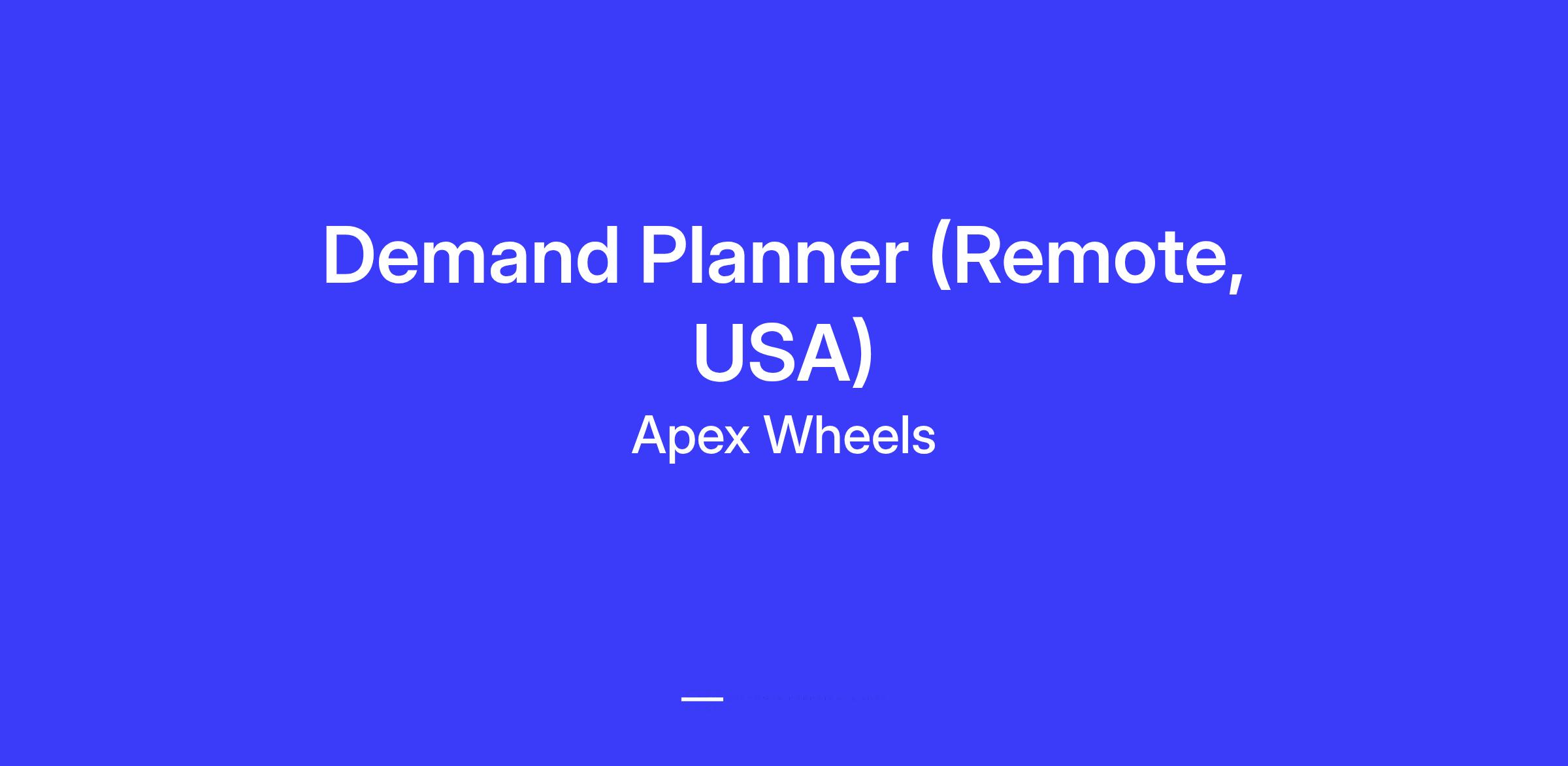 Are you a supply chain professional who sees stories in spreadsheets and knows how to turn them into smart, timely inventory decisions? Are you a statistics and math nerd with a passion for motorsports? Want your analytical skills to directly influence lap times and customer satisfaction? Apex Wheels is looking for a Demand Analyst to join our growing Supply Chain team and help ensure that the right wheels are available when our customers need them.