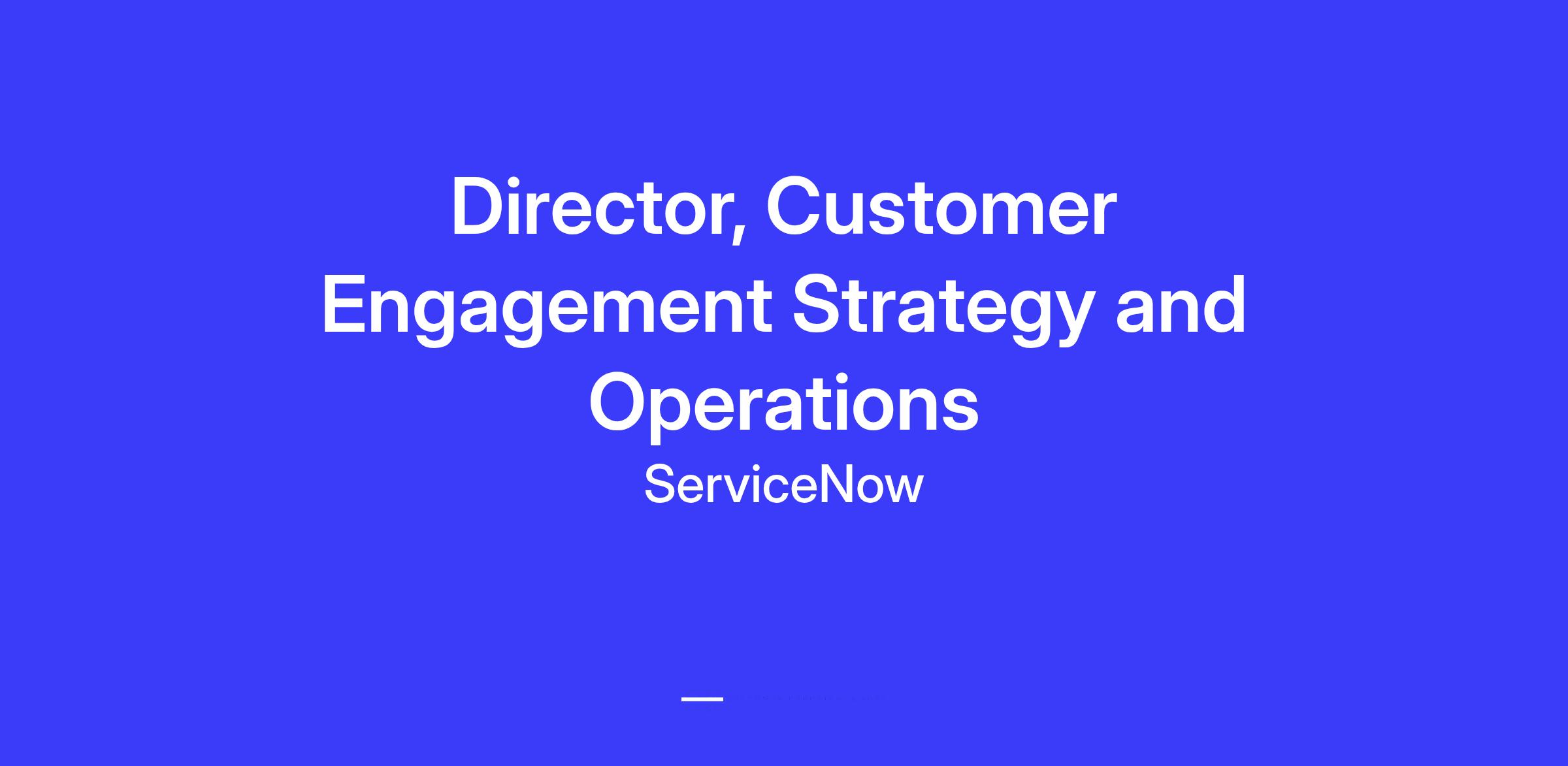 The Customer Engagement team partners with executives on our 360-degree approach to customer, partner, and internal employee engagements. The team collaborates with senior principals across the company to create long-term trusted relationships with key customers, accelerate our scale to $16B, and help make ServiceNow the best place to work.