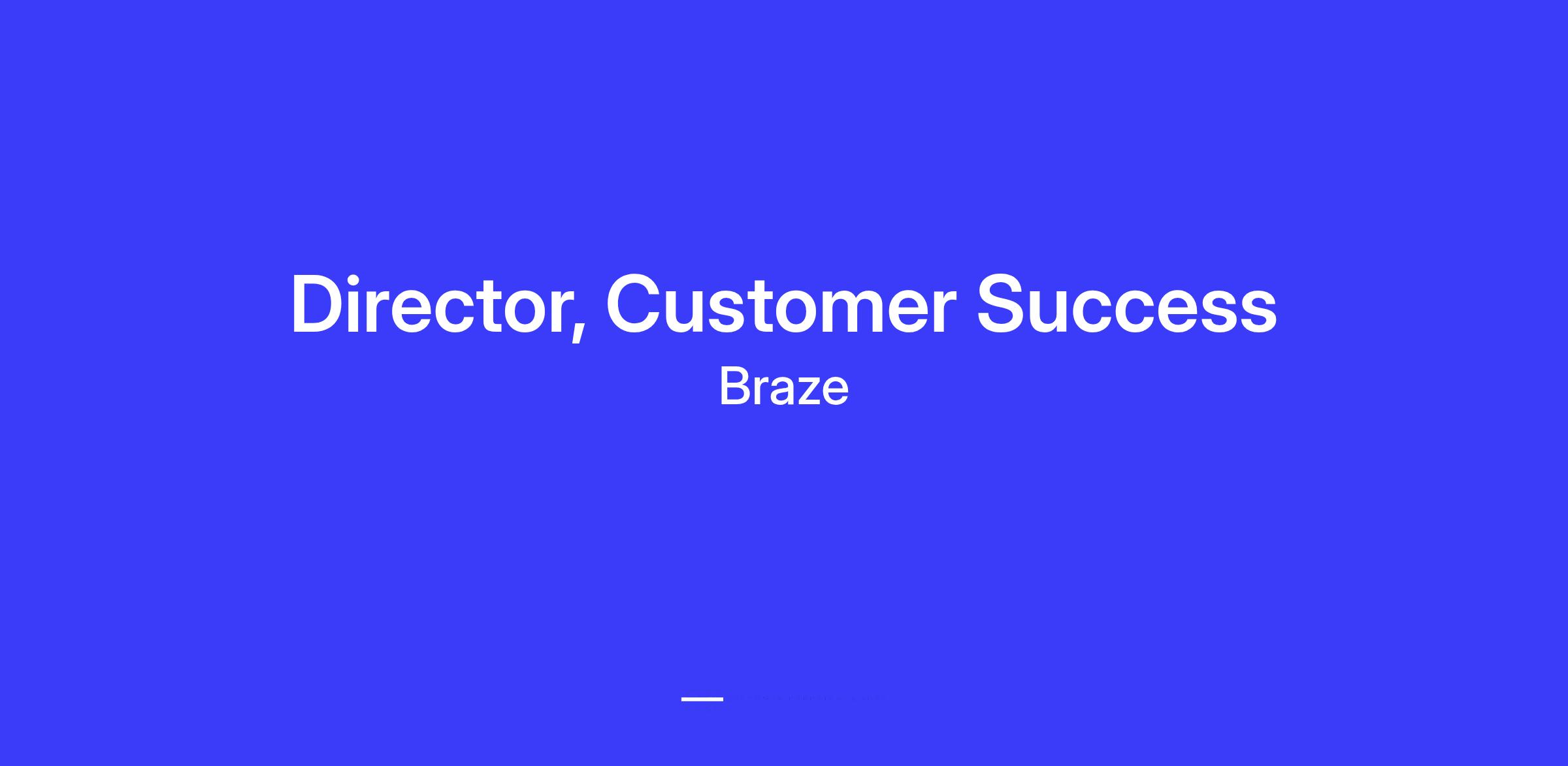 As a Customer Success Director you will join our department’s senior leadership team to own our entire [Classification] book of business within [Braze geography]. You will manage multiple teams, taking ownership of their growth, development and achievement. You will take ultimate responsibility for your team’s book of business, building strong relationships with customers, minimizing and mitigating risks, along with successfully supporting growth opportunities to ensure your teams hit their KPIs.