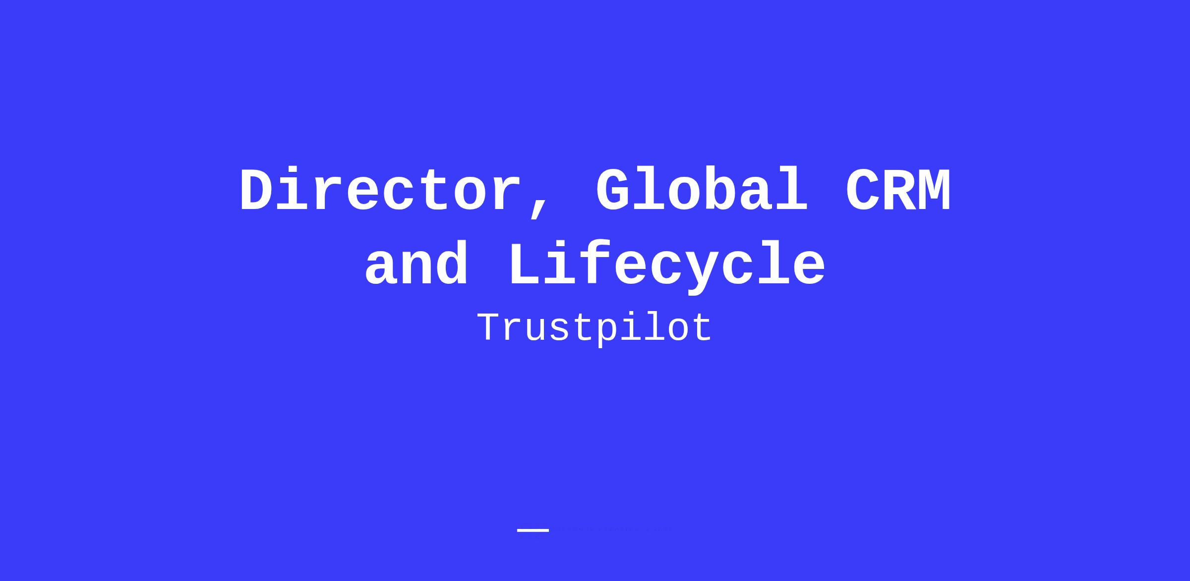 Trustpilot is on an exciting global growth journey, and we are seeking a highly skilled and experienced Director of B2B CRM and Lifecycle to join our team. This is a pivotal, strategic leadership role where you will develop and own the end-to-end global B2B nurture and lifecycle engine—segmenting and personalising journeys by customer type and persona to fuel our next stage of expansion, leading to increased revenue, and maximizing customer lifetime value (CLV), whilst delivering an intuitive customer experience.