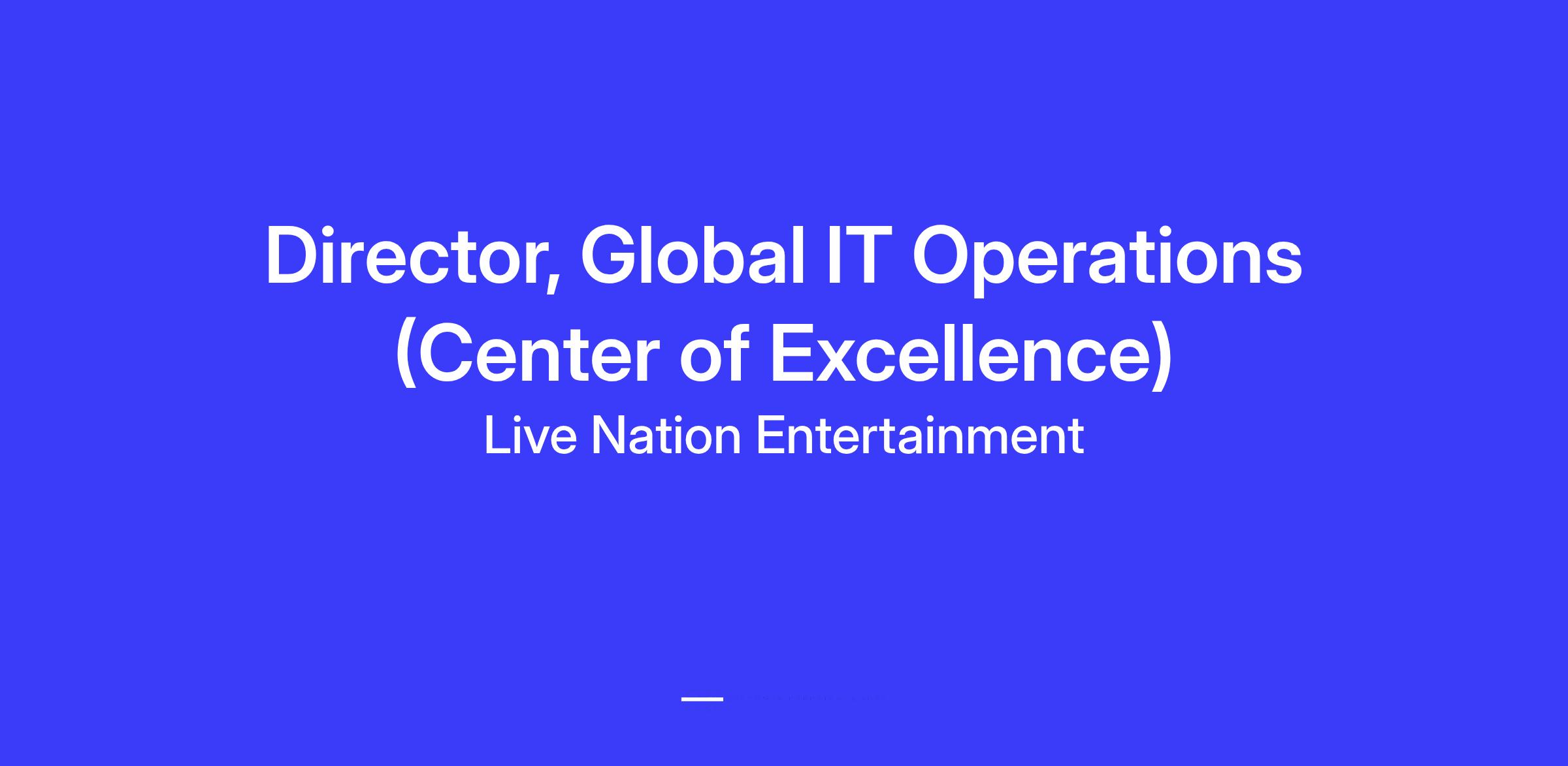 We’re looking for a Director, Global IT Operations (Center of Excellence) to lead the transformation of our Global IT Operations into a data-driven, automated, and continuously improving organization. This role sits at the intersection of business strategy, process governance, and operational excellence — shaping how Live Nation Entertainment delivers IT services at scale across the world.