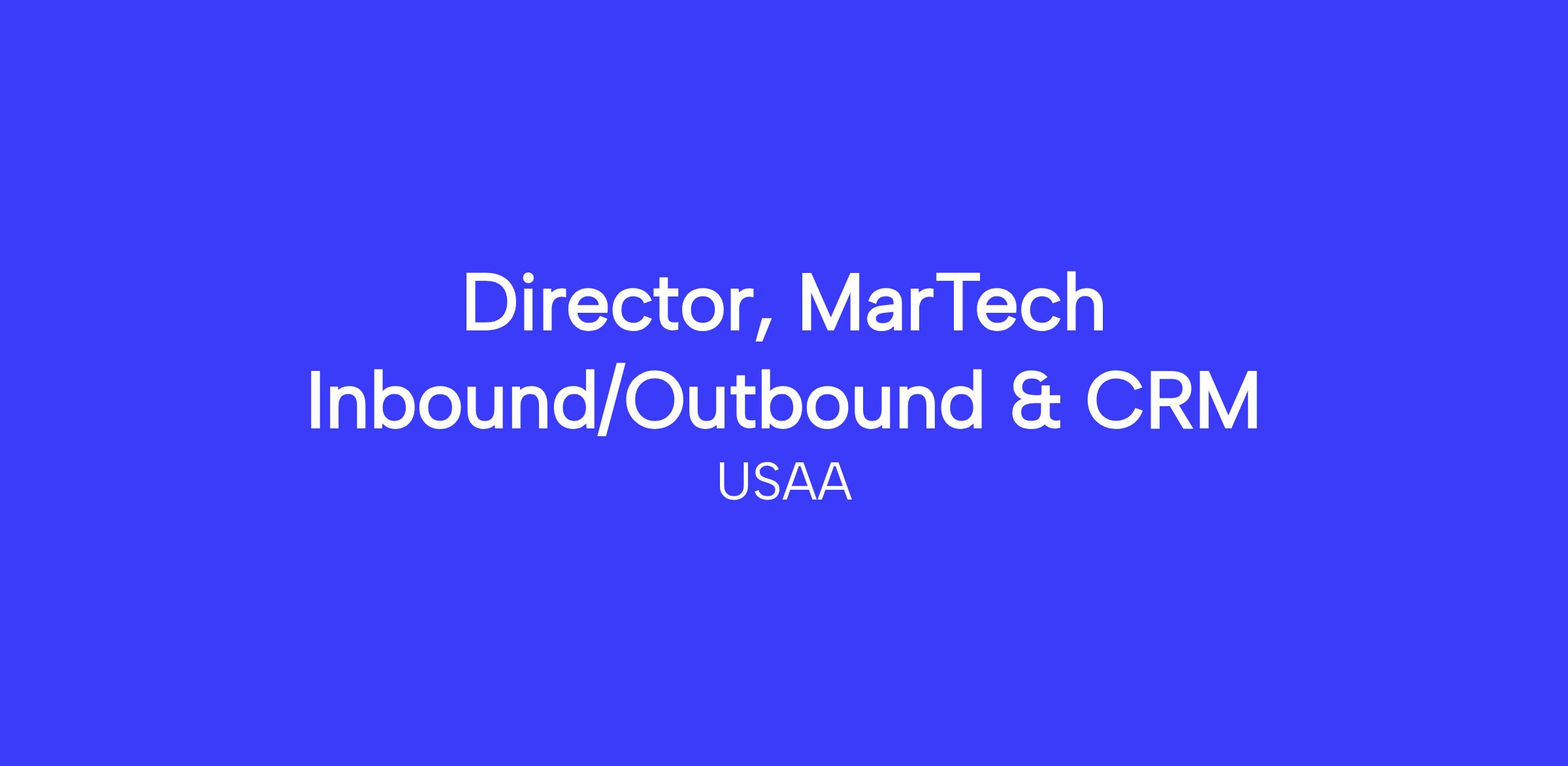 As a dedicated Director of Marketing Technology Inbound/Outbound & CRM, you will leads the Association-wide transformation of inbound and outbound marketing and sales engagement capabilities, driving a bold vision and strategy that aligns with long-term business goals and evolving customer expectations. Owns and innovates the implementation of platforms such as CRM systems, Adobe Campaign, Salesforce Marketing Cloud, and outbound channel tools for email, SMS, and call outreach - ensuring seamless integration within the broader MarTech ecosystem.