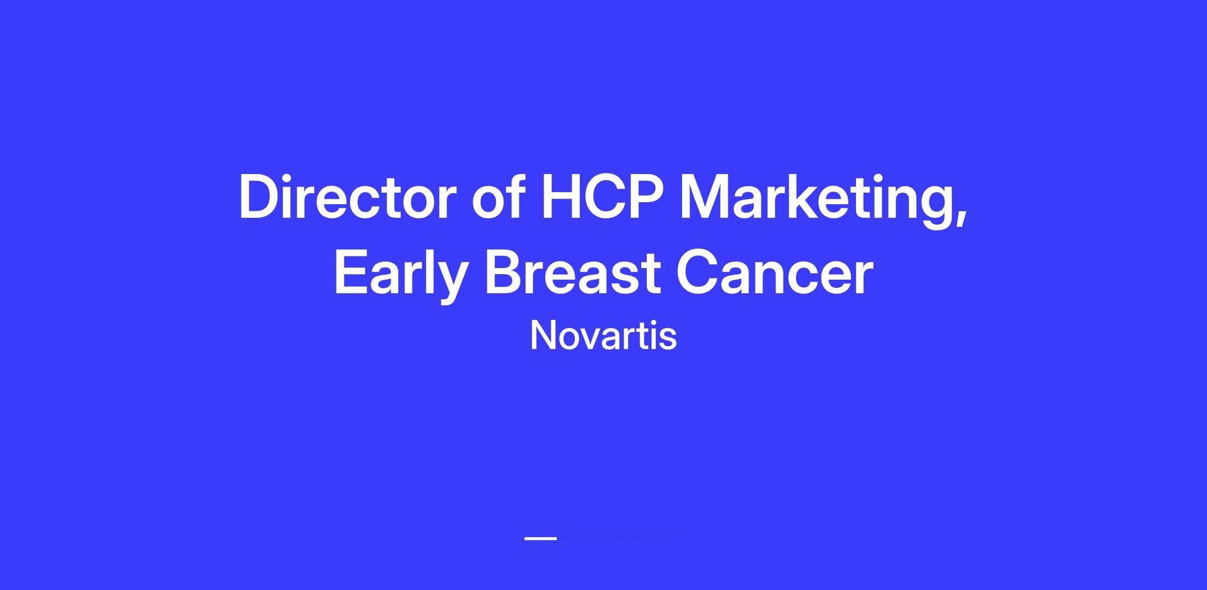 The Director of HCP Marketing, Early Breast Cancer, will be responsible for leading HCP Marketing Strategy and report to the Executive Director Marketing Strategy, Breast and Woman’s Cancer.