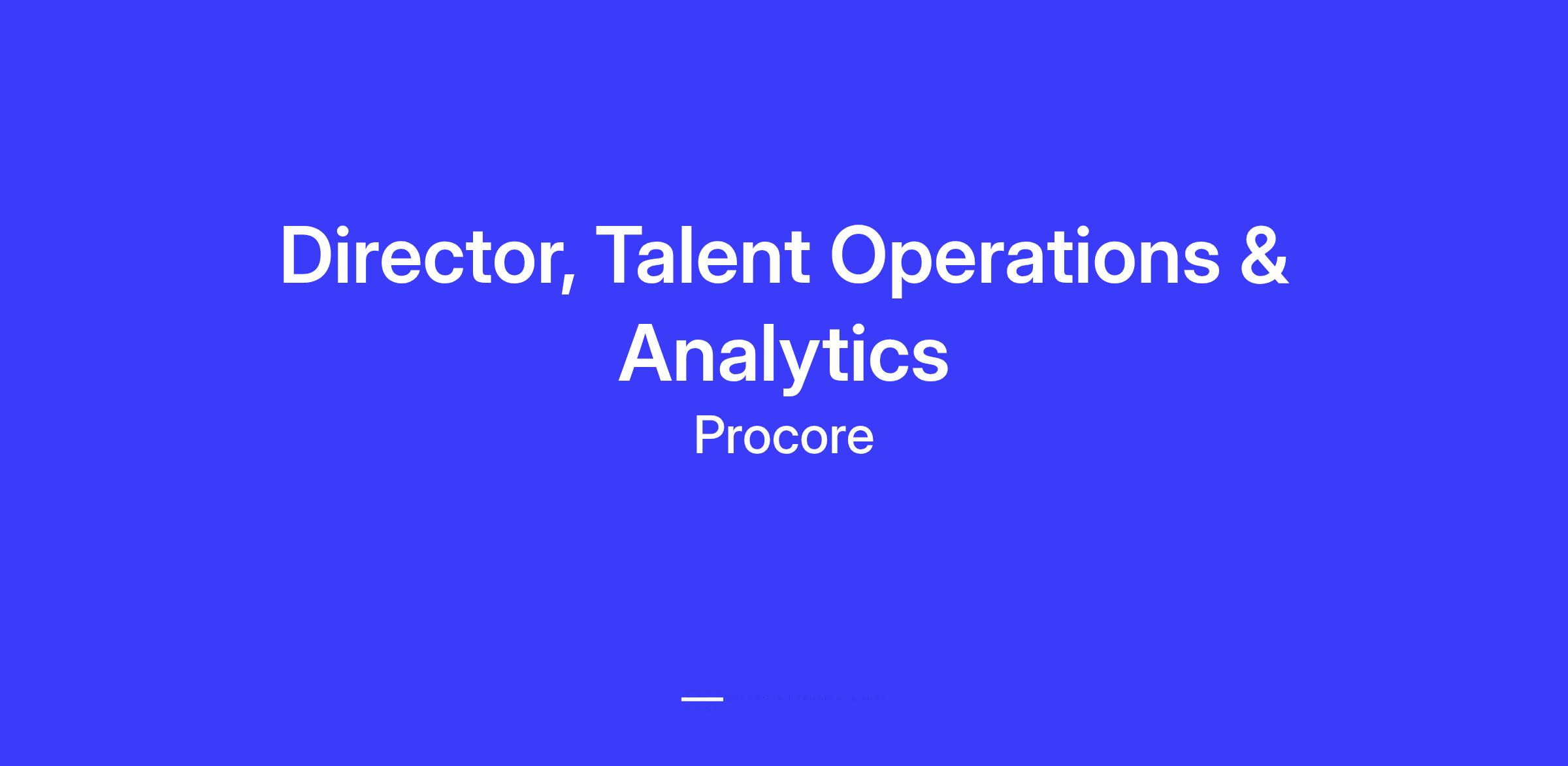 We are hiring a Director of Talent Operations & Analytics to join Procore’s People organization. We are building a seamless, data-driven, and people-centered talent ecosystem. Our Integrated Talent model brings the full talent lifecycle under one umbrella—linking external hiring with internal development and succession—so that every talent decision is guided by a unified philosophy, shared data, and common outcomes. This Director of Talent Operations & Analytics will be the strategic engine powering this vision. This is a unique and critical leadership role for someone who understands intuitively what it takes to run a world-class recruiting machine and how talent management products drive business results.