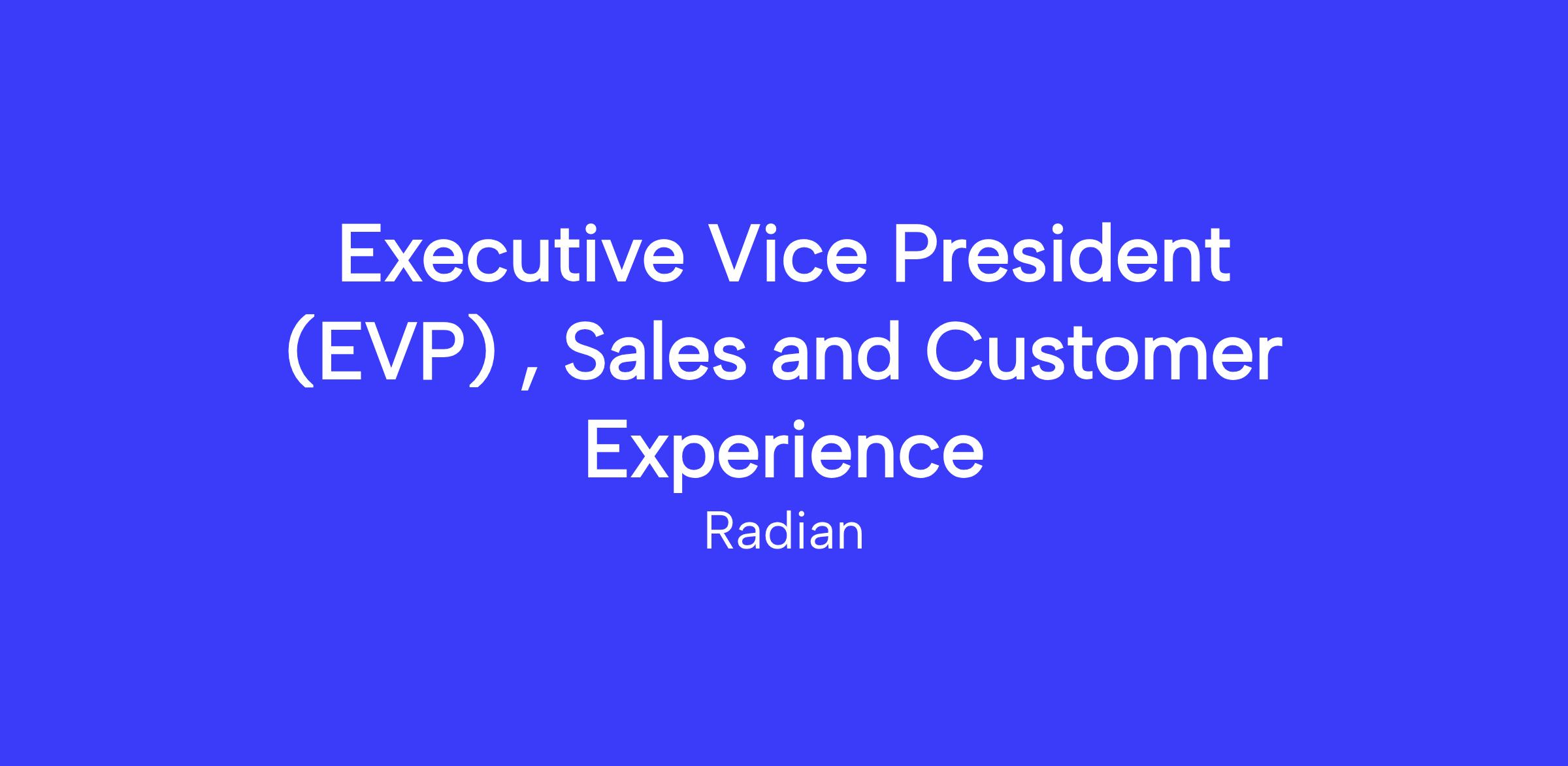 The EVP, Sales and Customer Experience is a key member of Radian’s leadership team. The position is responsible for the strategic direction and leadership of our national sales and customer experience teams. The role is accountable for economic value creation within our risk frameworks and industry-leading customer experience objectives. The EVP, Sales and Customer Experience manages key relationships with senior executive stakeholders at major lenders and other key business partners, including Loan Origination System (LOS) and pricing and product engine (PPE) vendors.