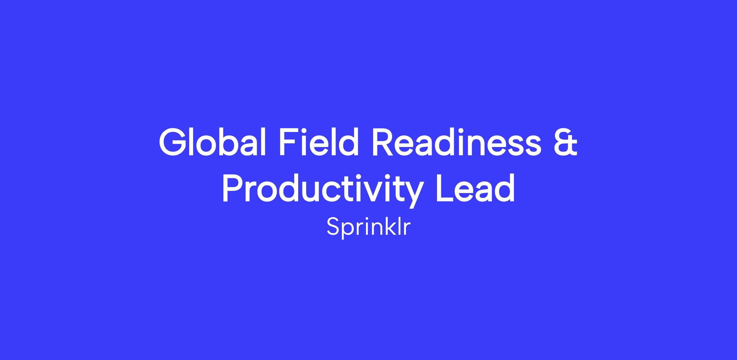 The Global Field Readiness & Productivity Lead is the owner of GTM field readiness and productivity outcomes for Sprinklr’s global organization. This role is responsible for the end-to-end design, development, delivery, and continuous optimization of GTM enablement programs that accelerate ramp, improve execution quality, and drive sustained productivity across customer facing teams and their leaders.