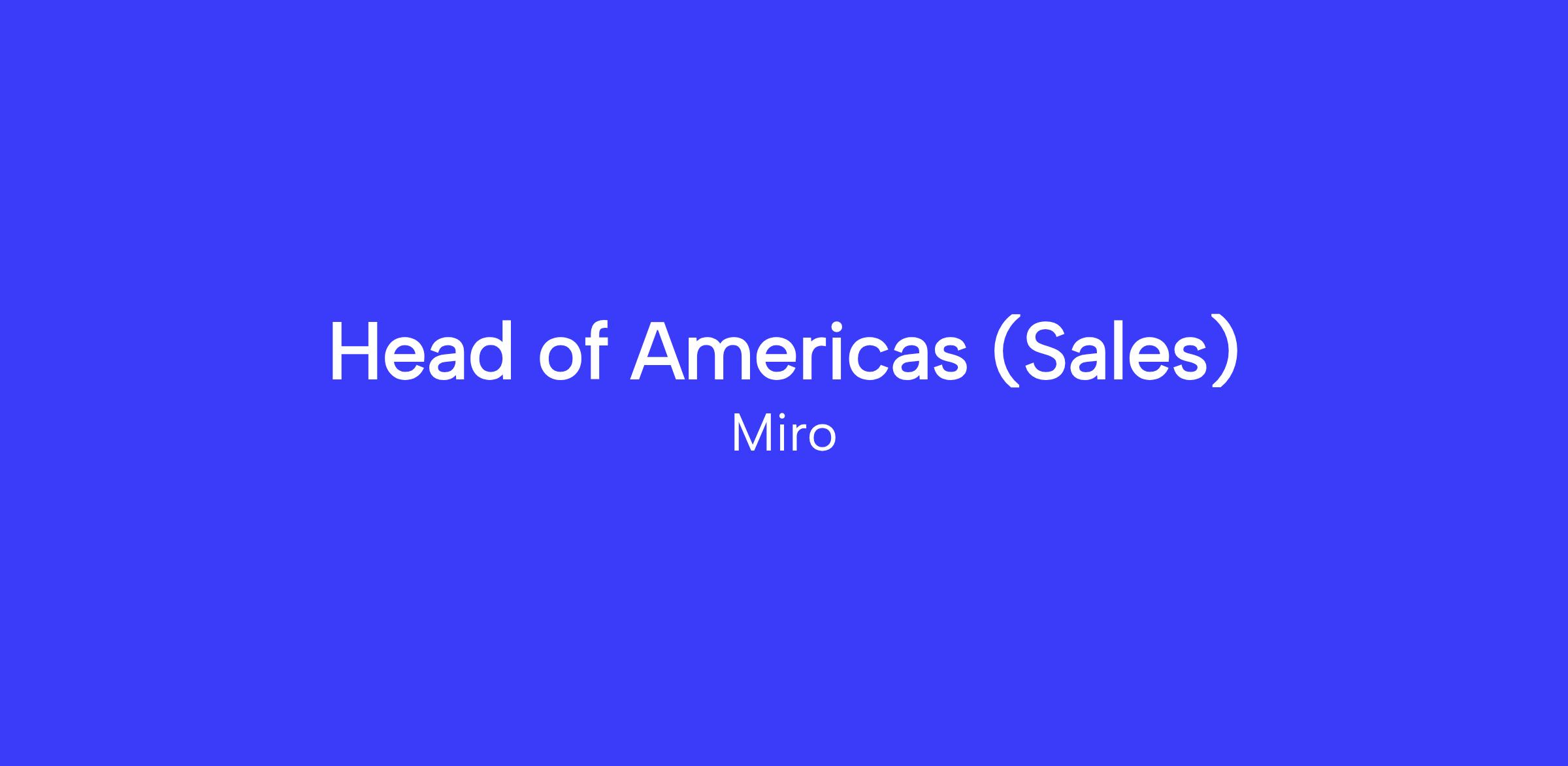 As the Head of AMER Sales, you will own all sales responsibility across major segments at Miro, leading the continued evolution from a collaboration tool into an AI-powered Innovation Workspace used by the world’s most dynamic companies.