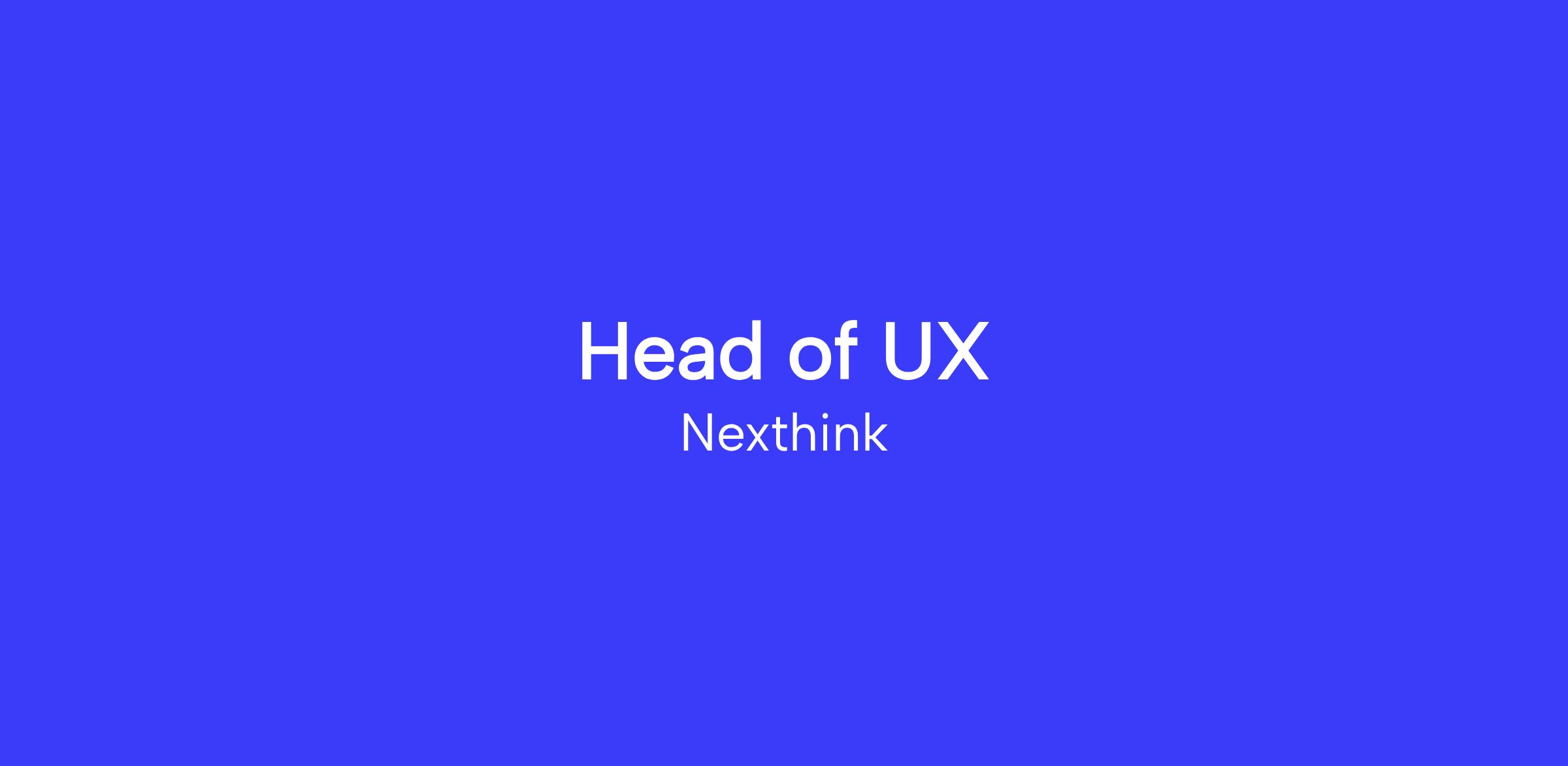 Nexthink is looking for an Executive-level UX leader (Head of UX / VP UX) with experience owning end-to-end user experience for a B2B SaaS or platform product at scale. You’ll be a core partner to the CPO, Engineering leadership, and GTM stakeholders to shape product strategy, accelerate momentum, and ensure UX decisions directly drive adoption, retention, differentiation, and revenue.
