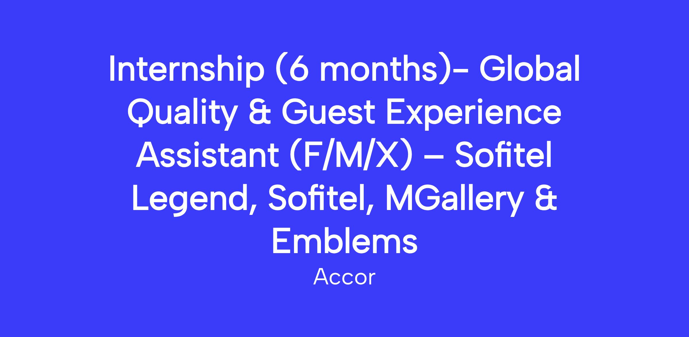 Within the Global Quality & Guest Experience Team, reporting directly to the Director Quality & Guest Experience, you will assist in building, developing and improving a guest-centric approach to Quality & Guest Experience for our 4 brands worldwide, leading to increased Guest Engagement.