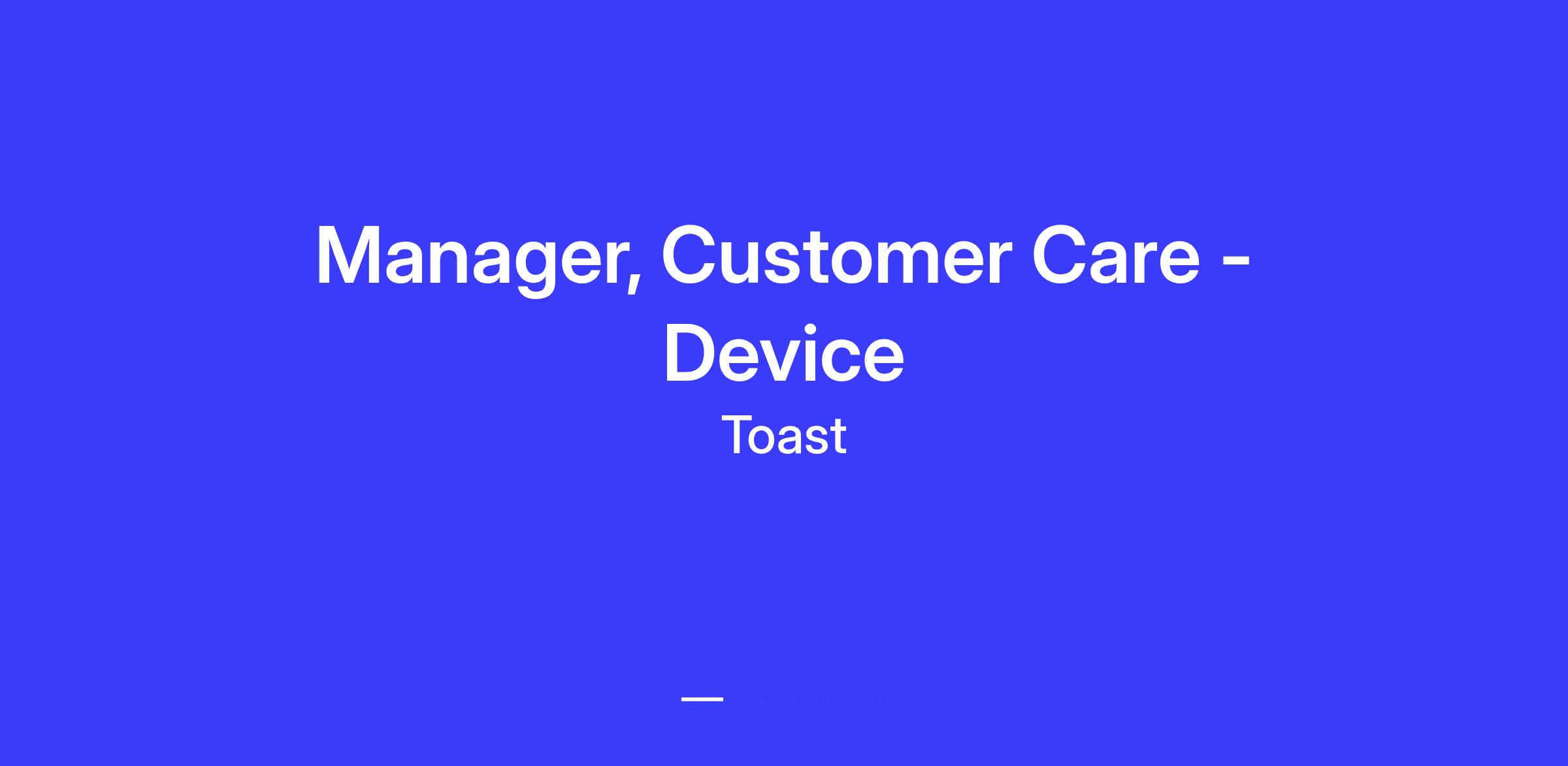 As a Customer Care Manager, you will actively manage a team of agents for the Device campaign. You are responsible for the productivity and the well-being of the members of the Customer Care Team in our Omaha, Nebraska office and will act as a Subject Matter Expert for Operations. You will oversee the customer journey for those experiencing Toast Device issues throughout the care experience, while working with cross-functional Internal teams such as Restaurant Success, Sales, and Onboarding to create process and support guidelines. To thrive as a Customer Care Manager at Toast, you are resilient, motivated to coach a team on delivering high quality customer interactions, and excel in ambiguous environments.