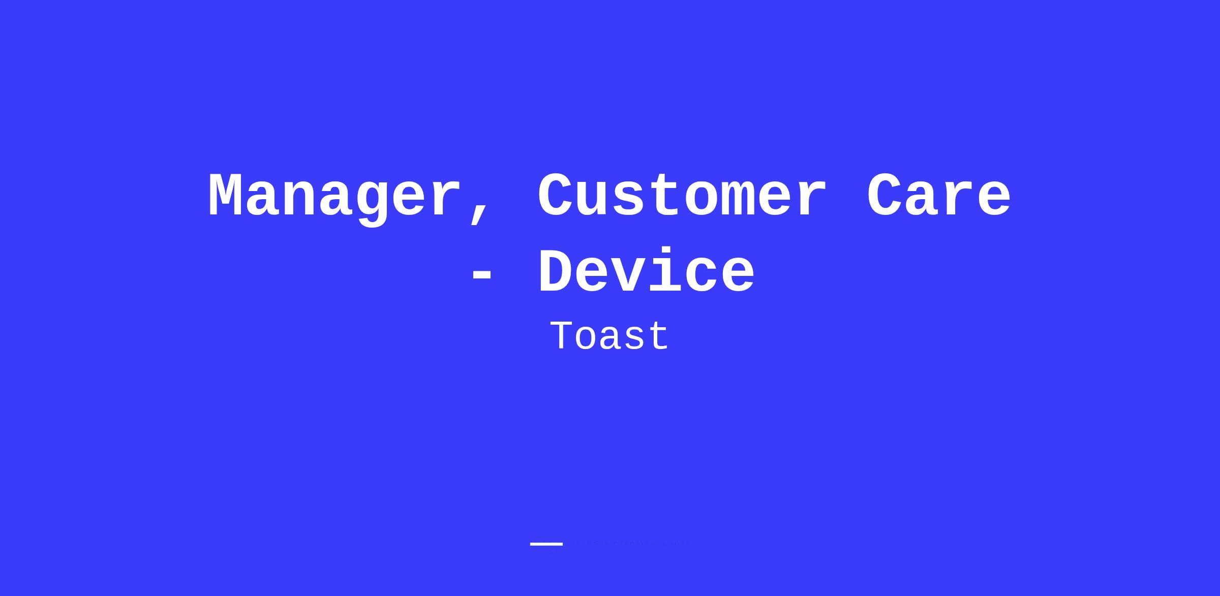 As a Customer Care Manager, you will actively manage a team of agents for the Device campaign. You are responsible for the productivity and the well-being of the members of the Customer Care Team in our Omaha, Nebraska office and will act as a Subject Matter Expert for Operations. You will oversee the customer journey for those experiencing Toast Device issues throughout the care experience, while working with cross-functional Internal teams such as Restaurant Success, Sales, and Onboarding to create process and support guidelines. To thrive as a Customer Care Manager at Toast, you are resilient, motivated to coach a team on delivering high quality customer interactions, and excel in ambiguous environments.