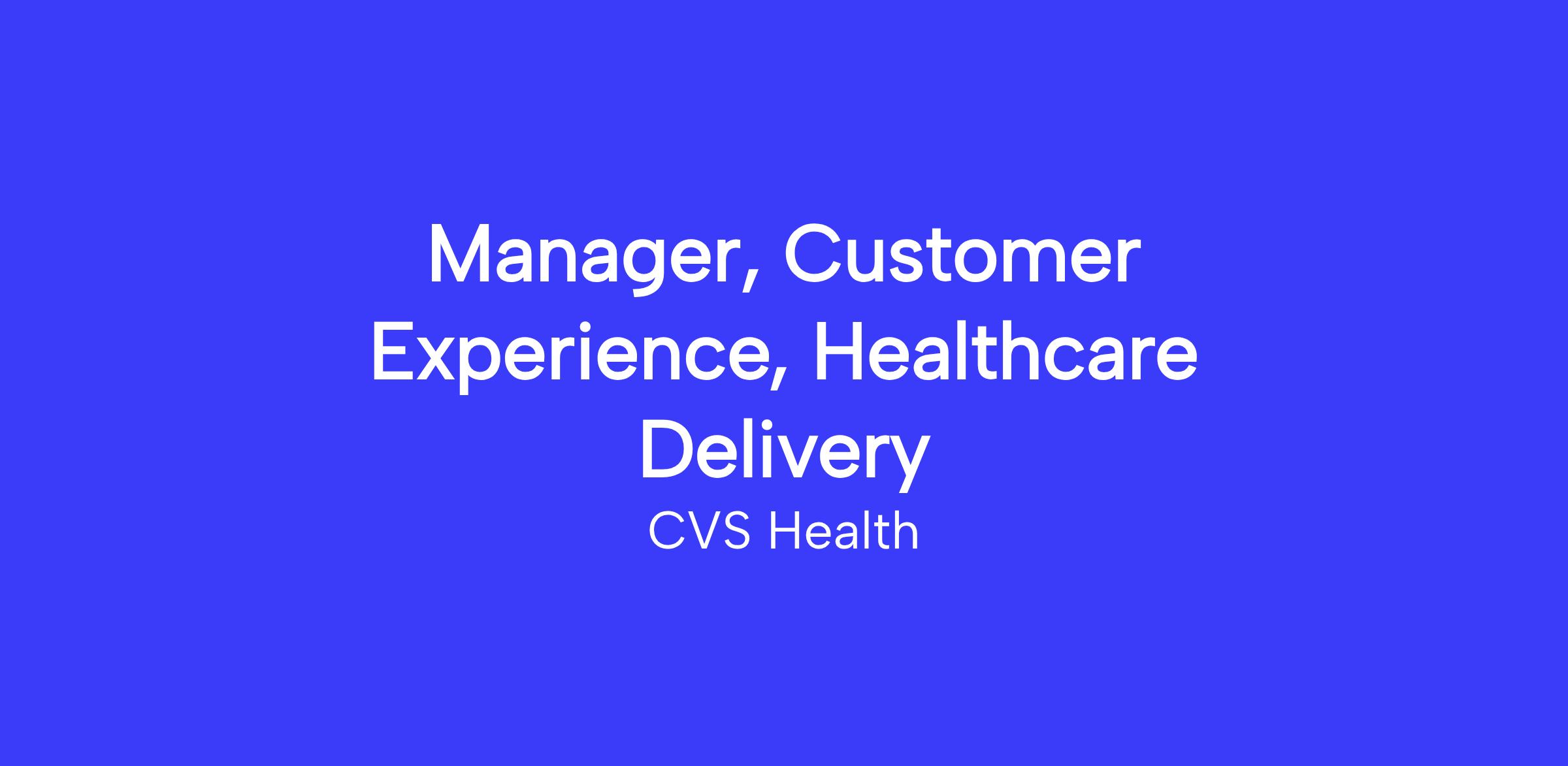 The Manager of Healthcare Delivery Customer Experience will be responsible for the day-to-day operations of the customer experience program for CVS’ Healthcare Delivery lines of business, including work across MinuteClinic, Oak Street Health, and Signify. Responsibilities include reporting, providing actionable insights that deliver business results, and acting as a voice of the customer champion to advocate for our patients.