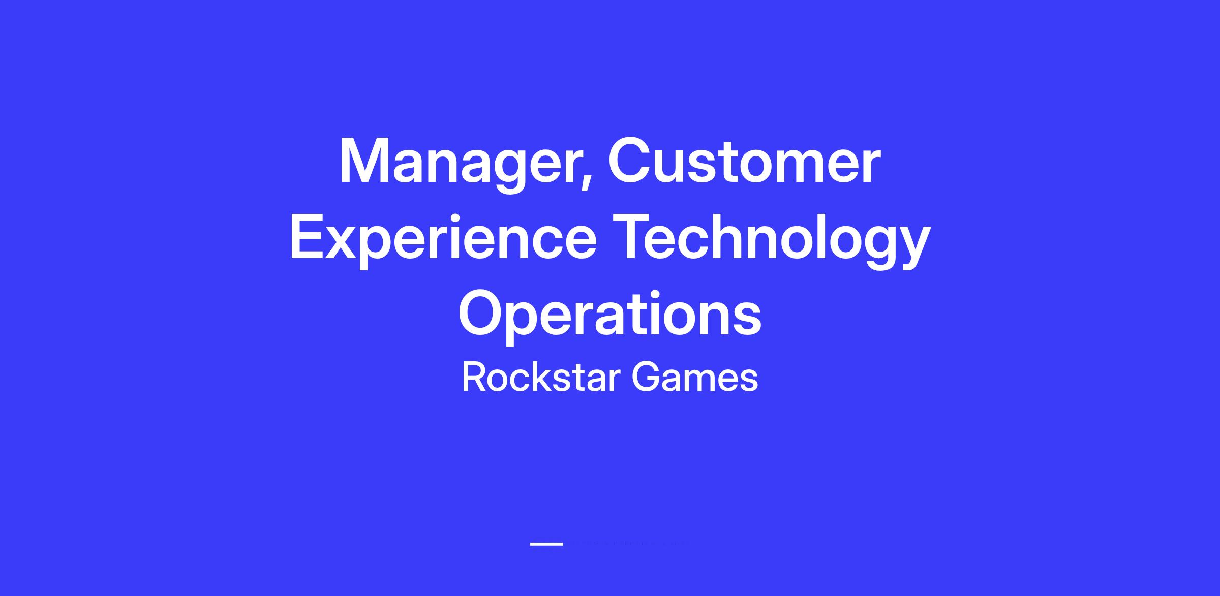 Rockstar is seeking a Manager of Customer Experience Technology Operations to join our Customer Experience team who will elevate our player experience through smarter automation, improved tooling, and rapid adoption of new technologies. This role will be responsible for the management and configuration of key technologies and drive excellence in Live Agent delivery and player self-service by delivering effective solutions for players and operational efficiency for our teams.