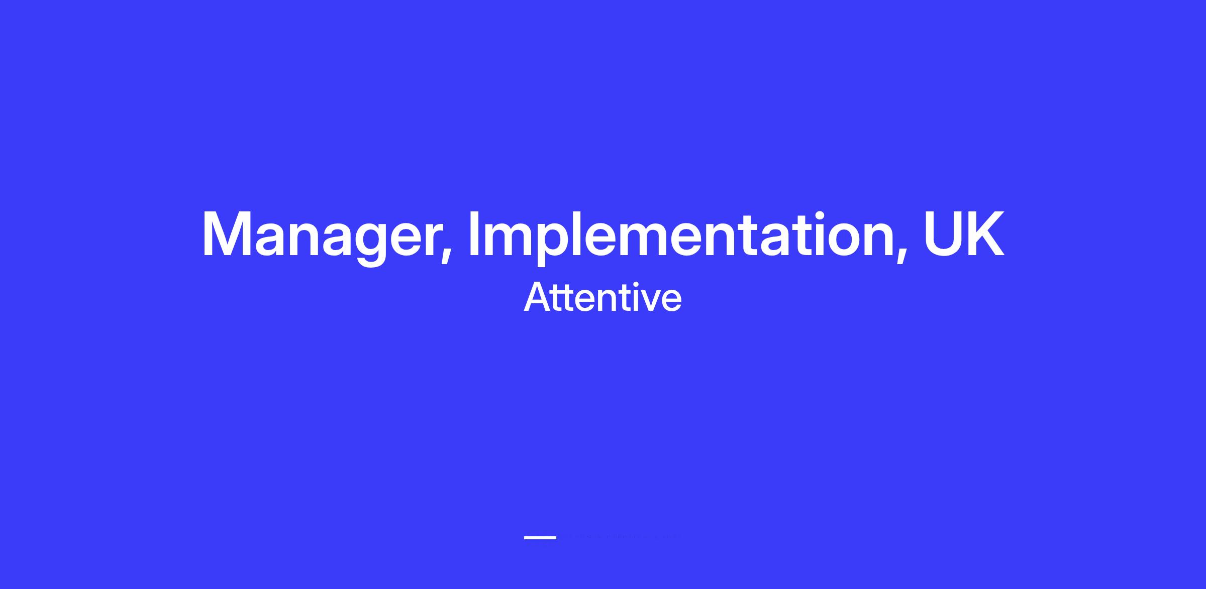 About the RoleWe are looking for an experienced Program or Project Manager to lead a team of Implementation Consultants who will work alongside our Sales and Customer Success leadership teams. This leader will help us evolve our Implementation methodologies into a set of differentiated multi-product offerings for our growing customer base. Using their depth of knowledge about the overall marketing technology ecosystem, this leader will be able to quickly become a master of the Attentive product suite and set an example for how we onboard our biggest customers to date. Using forecasting and project management tools, this leader will gather insights and promote transparency into our performance as a key step in the customer lifecycle between Sales and CS. In this role, the Manager of Implementation will get comfortable defining new processes that work for a broad customer base and will provide coaching in high stakes customer engagements.