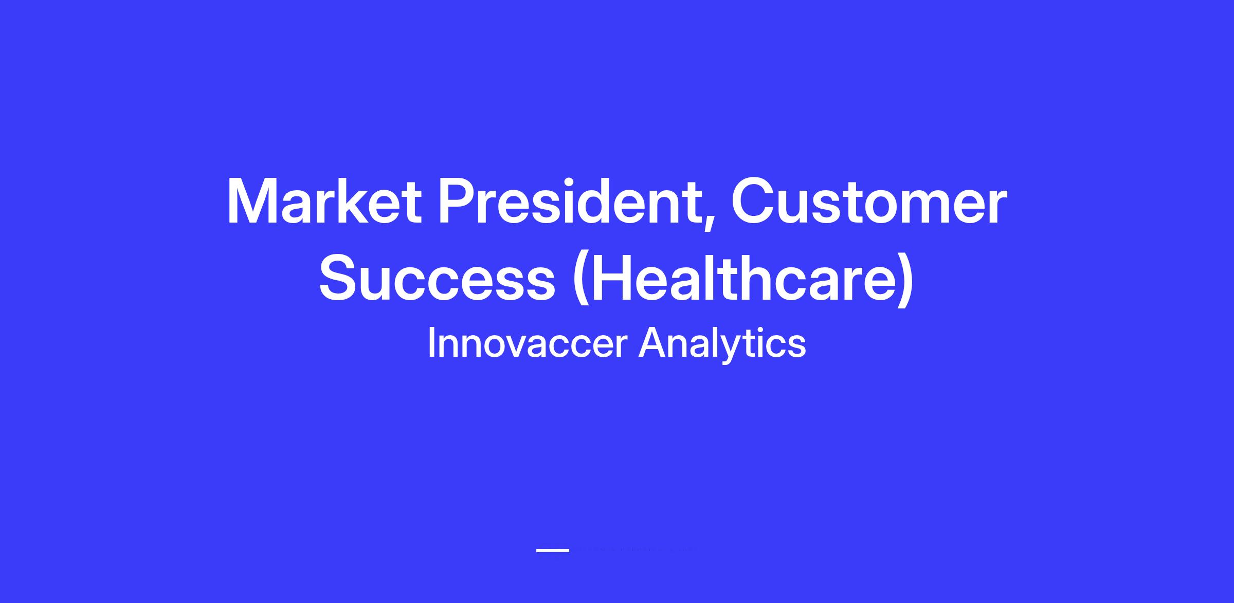 Innovaccer is seeking a proven healthcare leader to serve as Market President. This individual will be the senior face of Innovaccer to our provider clients — engaging directly with health system C-suites, representing Innovaccer as a strategic partner, and ensuring delivery of measurable outcomes.
