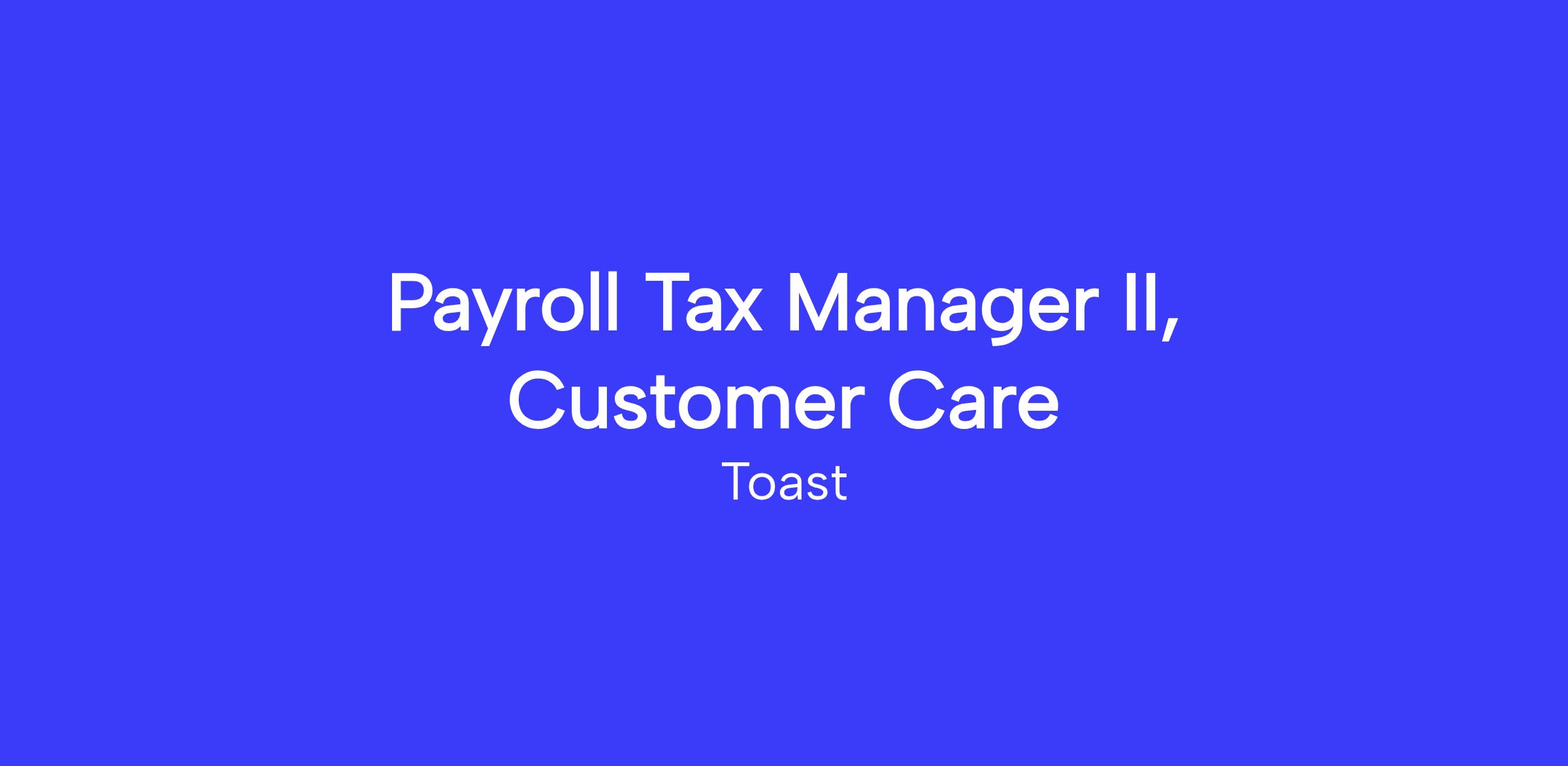 As a Customer Care Tax Manager, you will actively manage a team of agents for the Payroll Tax campaign. You are responsible for the productivity and the well-being of the members of the Customer Care Tax Team in addition to helping to improve the customer experience through the execution of department level KPIs and OKRs. You will oversee the customer journey for those experiencing Toast Payroll Tax issues with a focus on improving customer outcomes. You will work with cross-functional Internal teams such as Tax Operations, Restaurant Success, Sales, Onboarding, Enablement and R&D teams to create process and support guidelines. To thrive as a Customer Care Tax Manager at Toast, you are resilient, motivated to coach a team on delivering high quality customer interactions and outcomes, and excel in ambiguous environments.