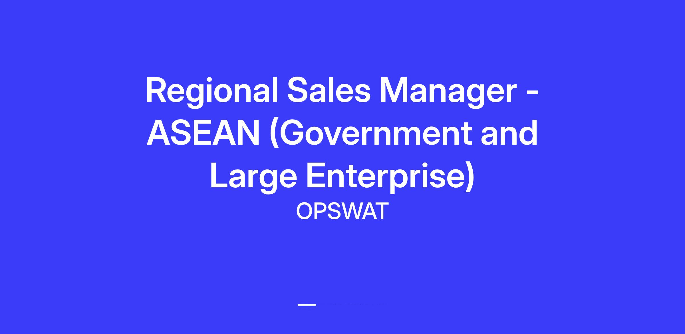The Regional Sales Manager will be responsible for learning OPSWAT’s technology and developing and executing a strategic account plan to drive the adoption of our cybersecurity platforms and solutions across ASEAN countries (Malaysia, Indonesia, Thailand and Philippines). Key focus areas include Government and Large Enterprise sectors such as BFSI, Telecommunications, and Conglomerates.