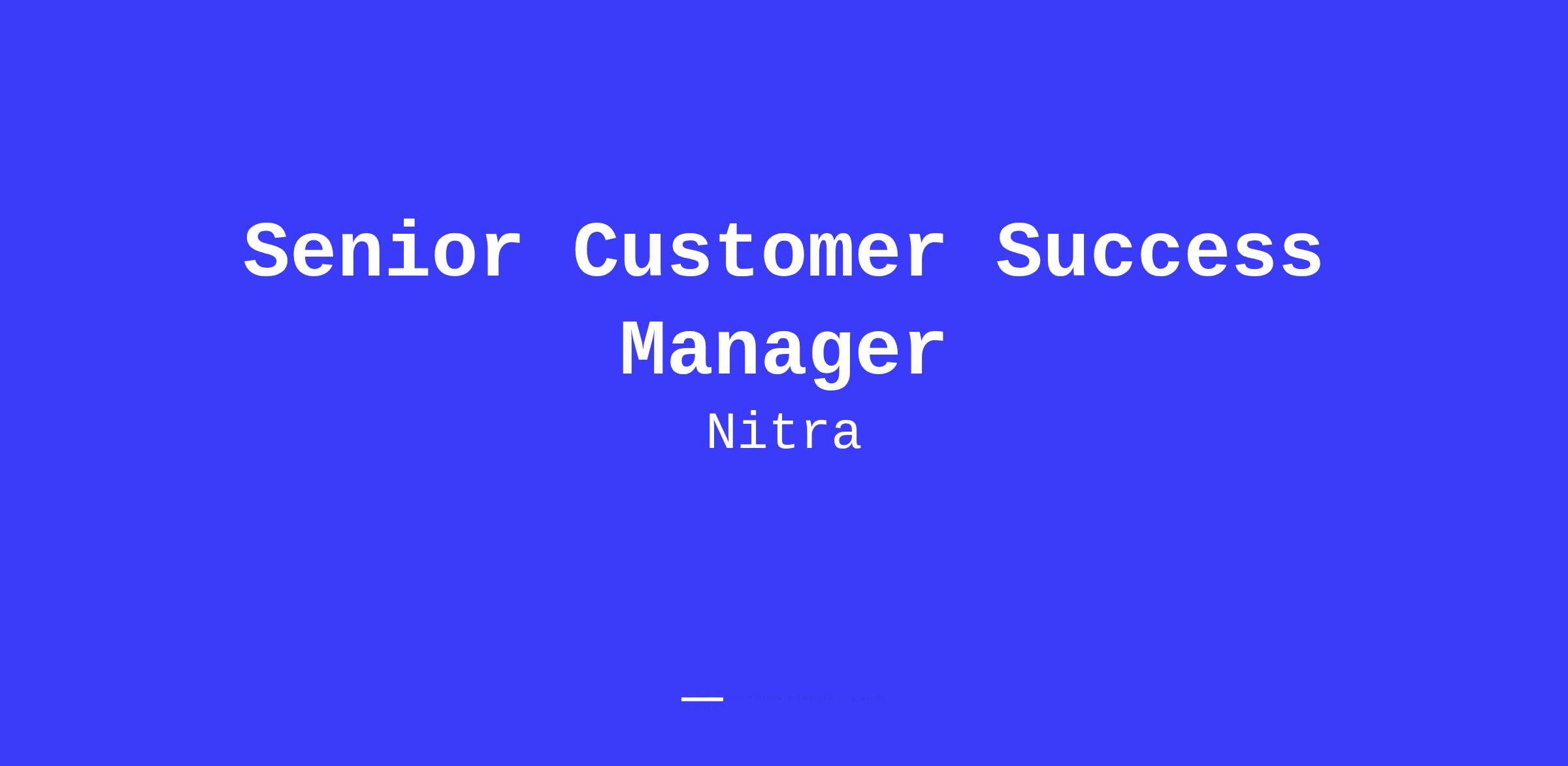 A Customer Success Manager who will be responsible for managing Nitra’s customers and channel partners. We need an expert in account management who will help Nitra continue its exponential growth trajectory and momentum.
