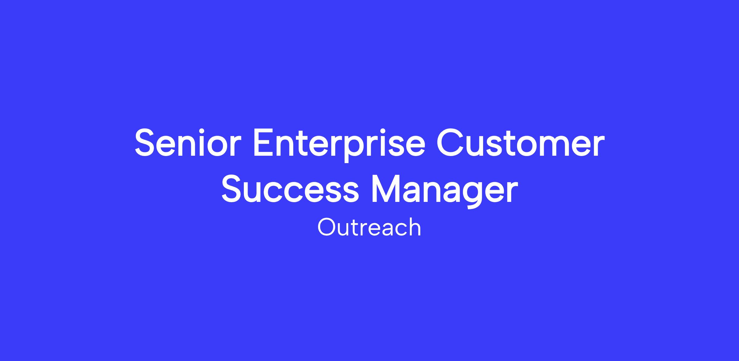 About the Team The purpose of Customer Success at Outreach is to guide our customers throughout their Outreach journey with a focus on removing barriers to product adoption and health. Through this we achieve mutual success by helping our customers realize value, leading to long term customer retention and growth. The Customer Success team is at the core of Outreach. We focus on driving real business impact for customers, not just supporting the technical specs of our product. We work to connect cross-functional stakeholders from product, marketing, and even engineering with customers. Customer Success acts as the trusted advisor to our customers, helping Sales Leaders shape their strategy and drive measurable business impact. We work strategically with customers helping them achieve their goals and then partner with our Growth Account Executives to drive renewal strategy. The Role We’re looking for a strategic, data-driven Customer Success Manager to partner with customers in maximizing value from our platform—leveraging AI to drive efficiency, adoption, and business outcomes. This role blends traditional CSM responsibilities with a strong focus on AI enablement, insights, and automation. As a Senior Enterprise Customer Success Manager you'll be responsible for driving platform adoption, assessing overall health of a customer’s engagement with Outreach, and providing strategic insight and guidance to customers aligned with their goals. This role acts as a point of contact for customer post implementation for guidance in the customer journey. This role is responsible for driving value and adoption of the Outreach platform for specific customers. This role acts as the voice of the customer internally at Outreach, serving as a customer advocate, and influencing future product/platform needs based on customer sentiment. A successful team member will be collaborative in their approach while advocating for customer needs to improve product, positioning, and capabilities. This position communicates with both internal and external stakeholders. LocationWe are considering remote applicants located and based in the PST time zone.