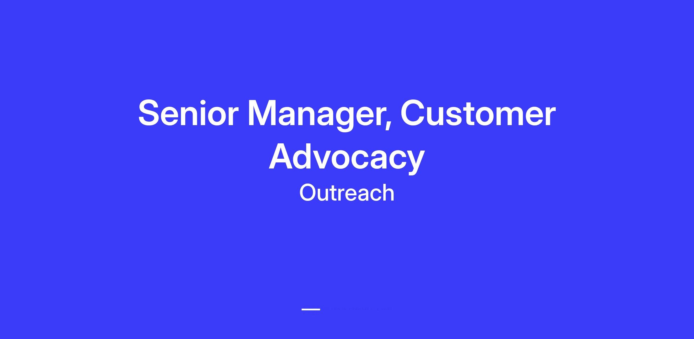At Outreach, our customers are our best advocates and most important asset. Do you love getting to know customers, what matters to them, and creating impactful programs that amplify their voice? We're looking for a dynamic Senior Manager, Customer Advocacy to join our corporate marketing team and drive advocacy throughout our customer base. This is a high-impact, highly cross-functional role where you'll blend creative storytelling, relationship building, and strategic program design to drive measurable business outcomes. In this role, you will be responsible for day-to-day management and growth of our customer advocacy program. Partnering with sales, marketing, customer success, and product teams, you will identify, curate, and amplify impactful customer experiences that elevate both our customers and our brand.