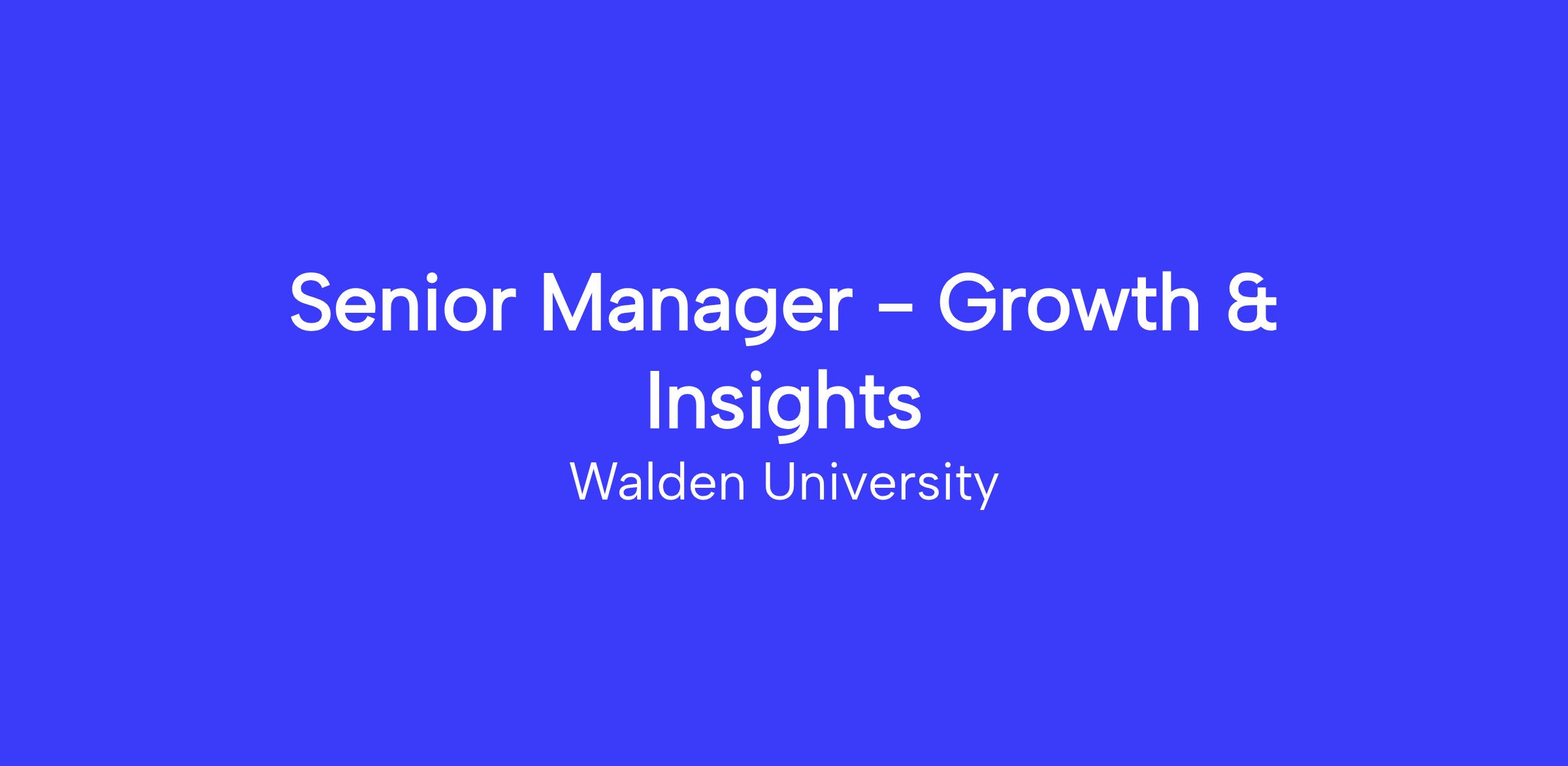 Reporting to the VP, Growth and Insights, the Senior Manager - Growth and Insights will partner with the University's enrollment, advising, and product management teams – as well as Covista's centralized marketing, customer experience, and workforce solutions teams to; 1) develop data-driven insights that can drive short and long-term strategies for growth, 2) support and lead high impact, cross-functional growth projects directly related to Walden's transformation and 3) conduct analysis to monitor and assess project/initiative performance. In this role, the Senior Manager will be key in supporting the University. its executive team, and functional leaders in growing the institution and winning market share. The Senior Manager will partner with the team to help drive revenue, enrollment growth, market share, persistence, gross margin improvements and student outcomes. In addition, the Senior Manager will track and drive insights from leading indicators such as lead mix and volume, website performance, admissions conversion rates, cohort retention rates, student satisfaction, graduation rates, employment outcomes, and program profitability. The ideal candidate should be an individual who can think strategically while supporting and driving results. They will have strong analytical capabilities and the ability to drive insights and then drive action from those insights. This individual will have a strong understanding of digital education or a comparable industry. A bias towards action and speed of execution will be beneficial as it is imperative for the University to improve its competitiveness and drive growth.