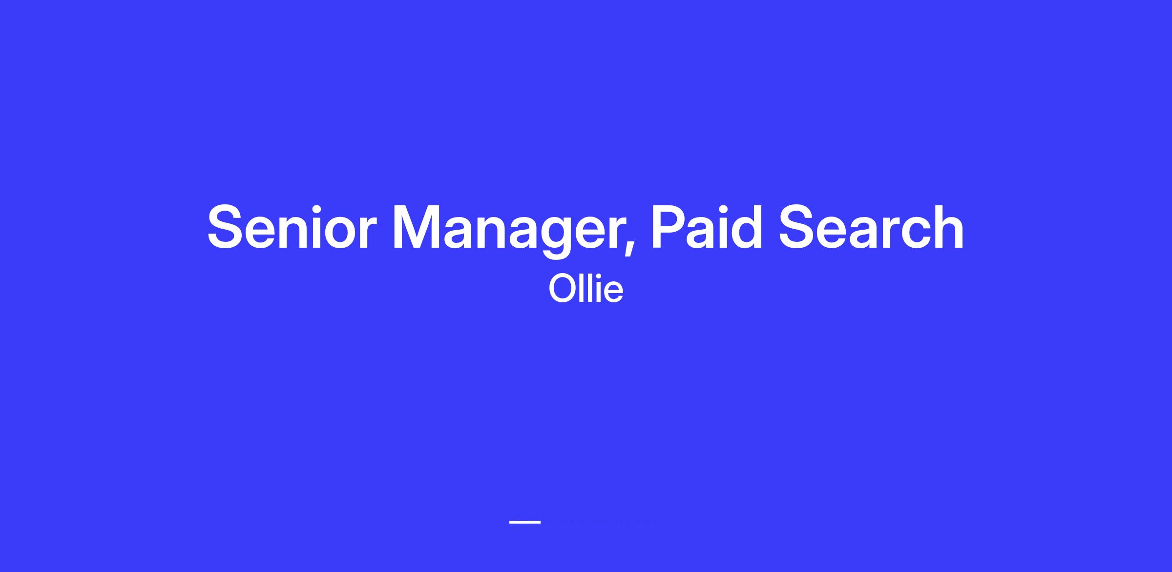 Ollie is seeking a Senior Manager, Paid Search to lead our paid search strategy, overseeing day-to-day campaigns and driving long-term growth initiatives. In this role, you’ll work closely with the Director of Growth to align search marketing with broader business objectives, mentor and develop junior team members, and optimize campaigns to deliver measurable ROI. This position combines hands-on campaign management with strategic thinking to drive customer acquisition through paid search.