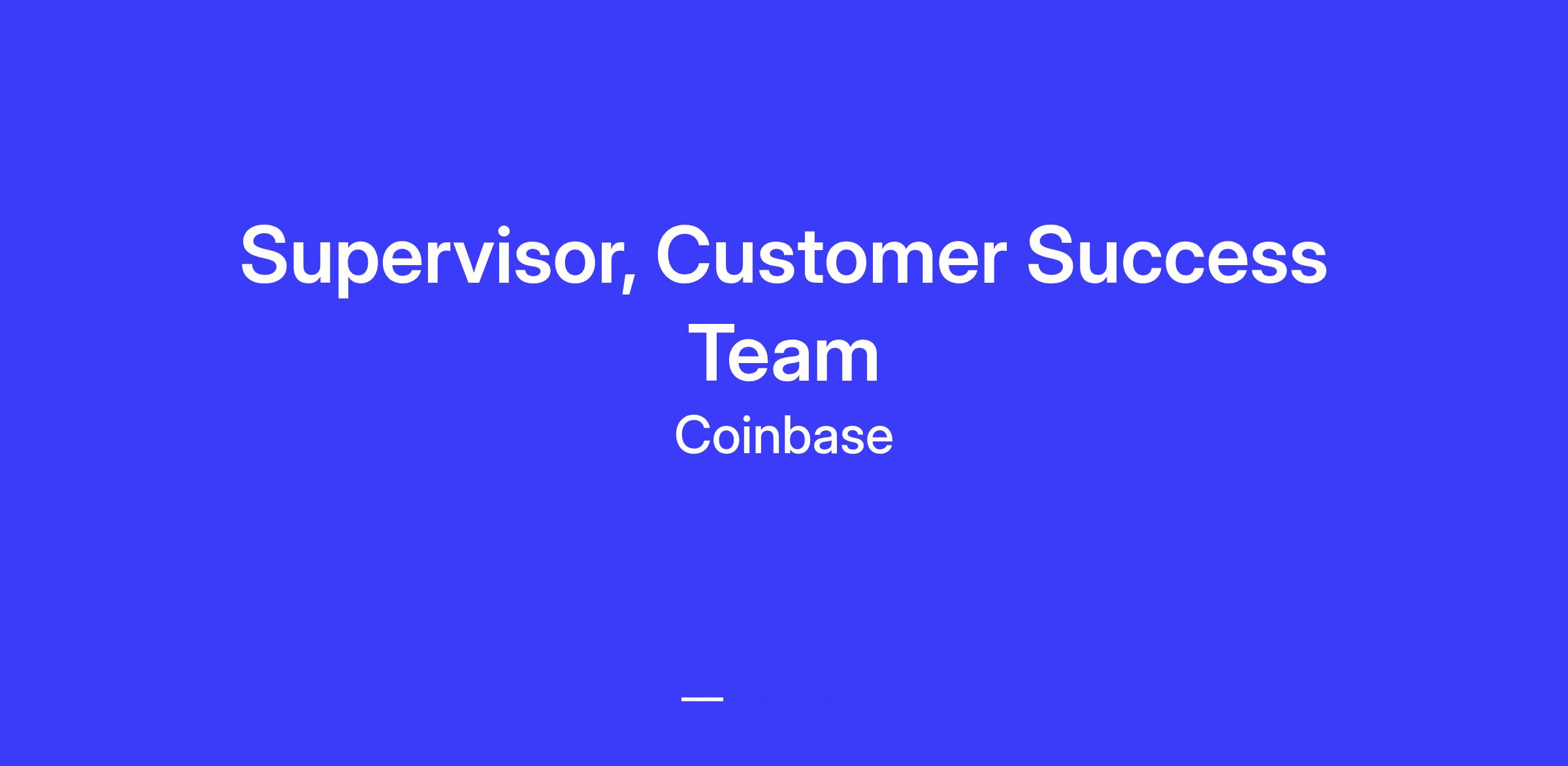 As a Supervisor for the Concierge on the Customer Success Team, you will lead a specialized team of customer focused Concierge Agents who own high value customer relationships that are essential to Coinbase achieving its mission. Using your customer support, operations, and team leadership skills you will play a crucial role ensuring we deliver an outstanding high value customer experience globally.