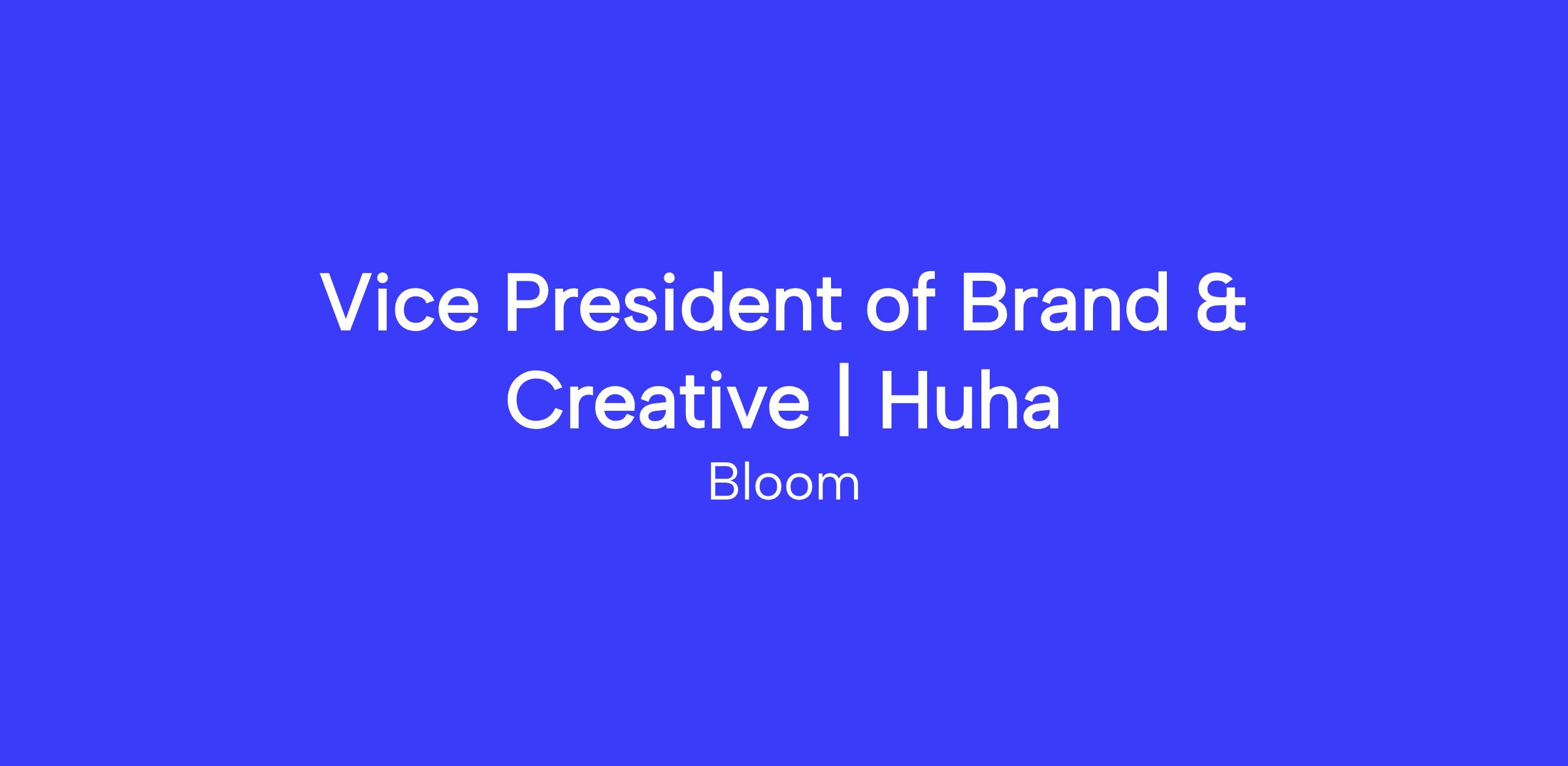 Bloom is a full-service workplace design consultancy representing Huha on their search for a VP of Brand & Creative to join their team. As Talent Advisors, we will be the liaison between our Huha and yourself during this recruitment process. We do not use fancy tech to search through resumes at Bloom; every resume is reviewed by a human to ensure that we attain a consistent and equitable interview process. You will directly join our client’s team if you are selected as the successful candidate. We look forward to seeing your application!-------